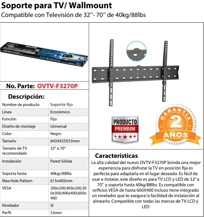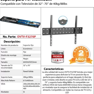 Soporte de Pared Fijo OVALTECH OVTV-F3270P para TV de 32 pulgadas a 70 pulgadas (Resistencia 40kgs)