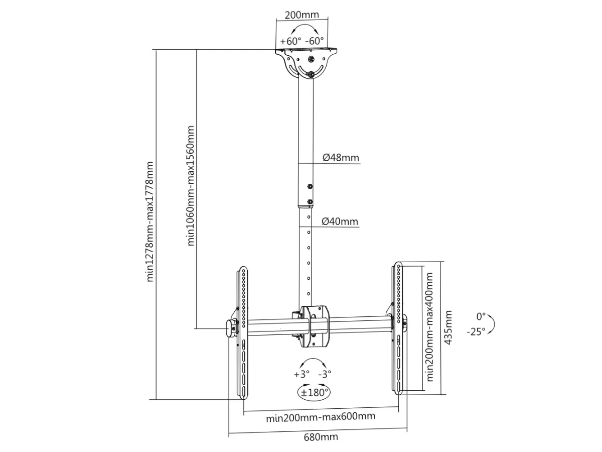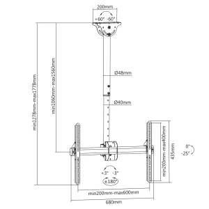 Soporte de Techo OVALTECH OVTV-C3770 para TV de 37 pulgadas a 70 pulgadas (Resistencia 50kgs)