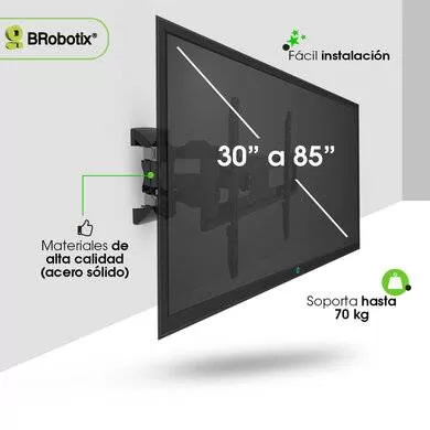 SOPORTE PARA TV, DE PARED ARTICULADO DE 30 A 85 PULGADAS, DOBLE BRAZO, DE ACERO, RESISTENCIA 70KG, NEGRO, 6007808 BROBOTIX