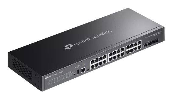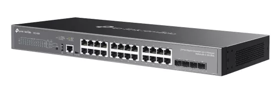 Switch administrable L3(SG5428X) 24 puertos Gigabit RJ45 y 4 ranuras SFP+ de 10 Gbps,1 puerto de consola RJ45, 1 puerto de consola USB tipo C, 1 puerto US