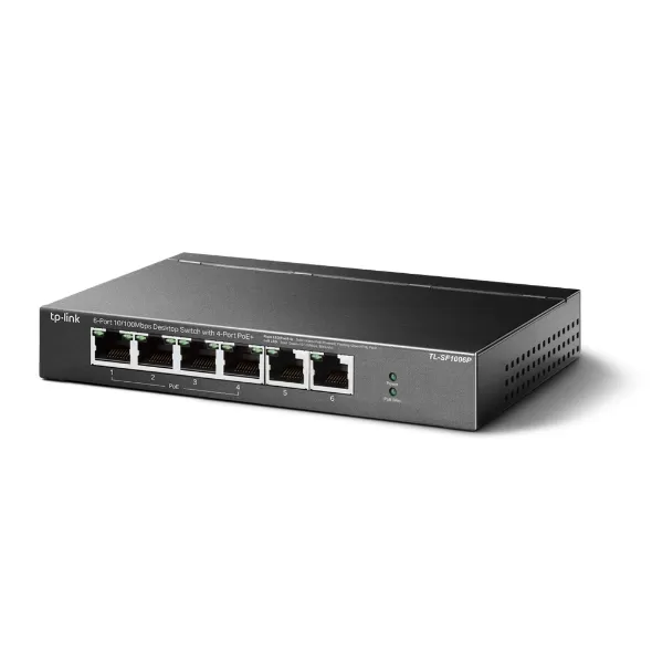 Switch de escritorio de 6 puertos a 10/100 Mbps con 4 puertos PoE+