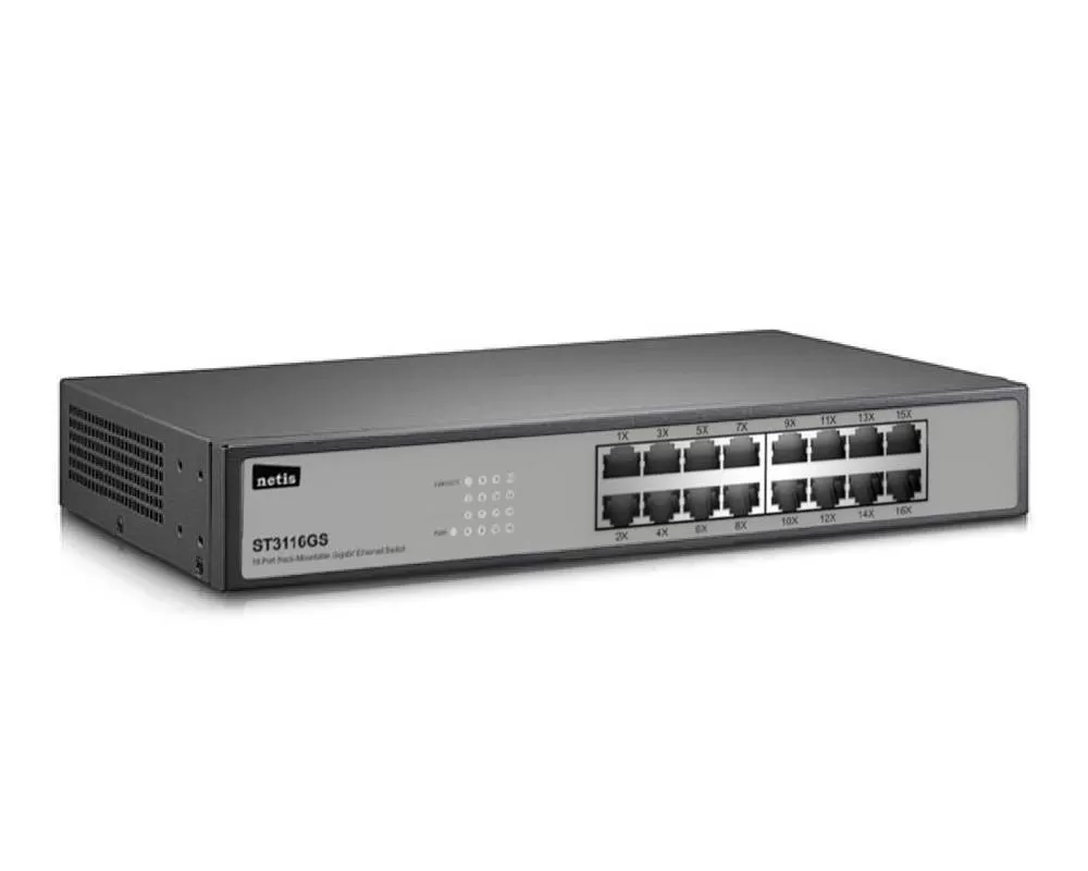 Switch NETIS modelo ST3116GS, 16 puertos Gigabit, montable en rack, No administrable