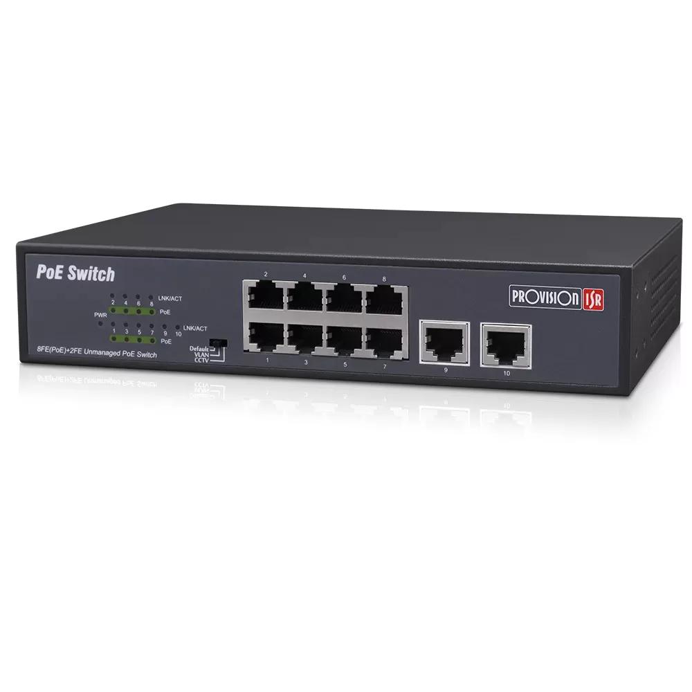 Switch PoE de 8 canales, Total power 120W, en modo CCTV puedes conectar cámaras IP hasta 250 mts
