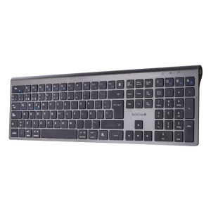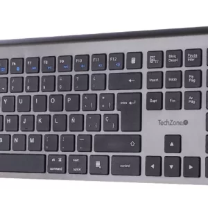Teclado HEFESTOS recargable con conexión Bluetooth TECHZONE TZACTCB01 color plata, QWERTY. Compatibilidad: Windows, Android y MacOS.