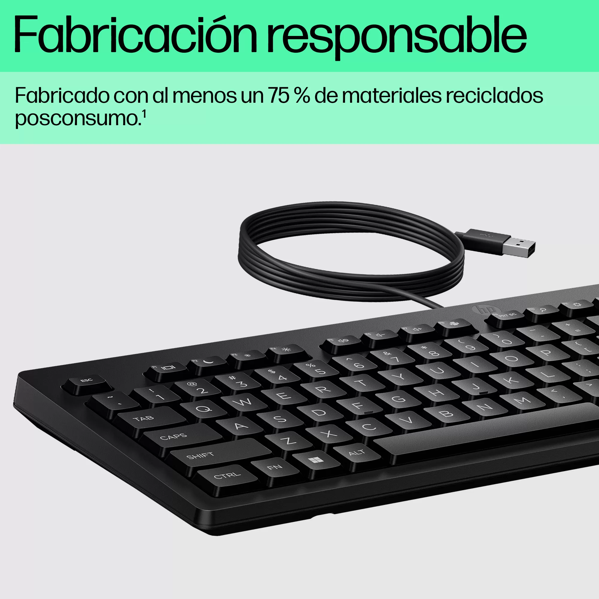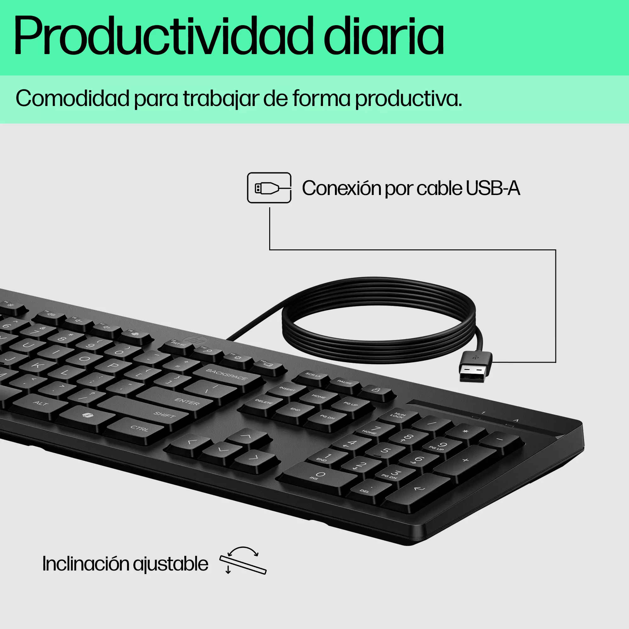 Teclado HP 125 (AY2Y7AA#ABM). Conectividad Plug and Play, Color Negro.