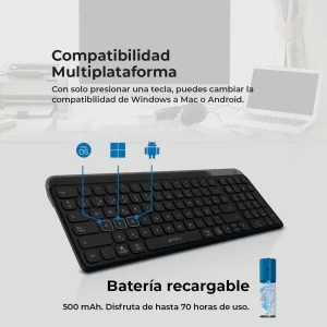 Teclado Inalámbrico Multidispositivos INSPIRE TREK TI747 AC-940108 Acteck Elite Series Bluetooth 5.1, Dongle 2.4 MHz