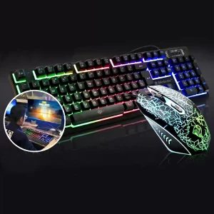 Teclado y Mouse USB RGB Negro BROBOTIX 458977 , Negro, DPI ajustables: 800 / 1600 / 2000 / 2400
