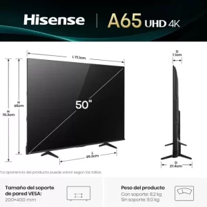 Televisor Hisense 50A65NV, 50 pulgadas, LED 4K UHD, 3840 x 2160 Pixeles, VIDAA SMART TV