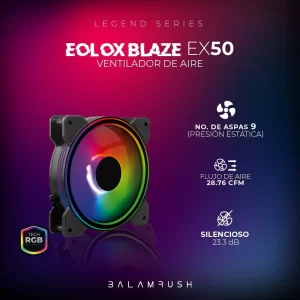 Ventilador de 120mm ARGB Balam Rush Eolox Blaze EX50 Velocidad: 1500 Rpm Flujo de aire: 28.76 CFM