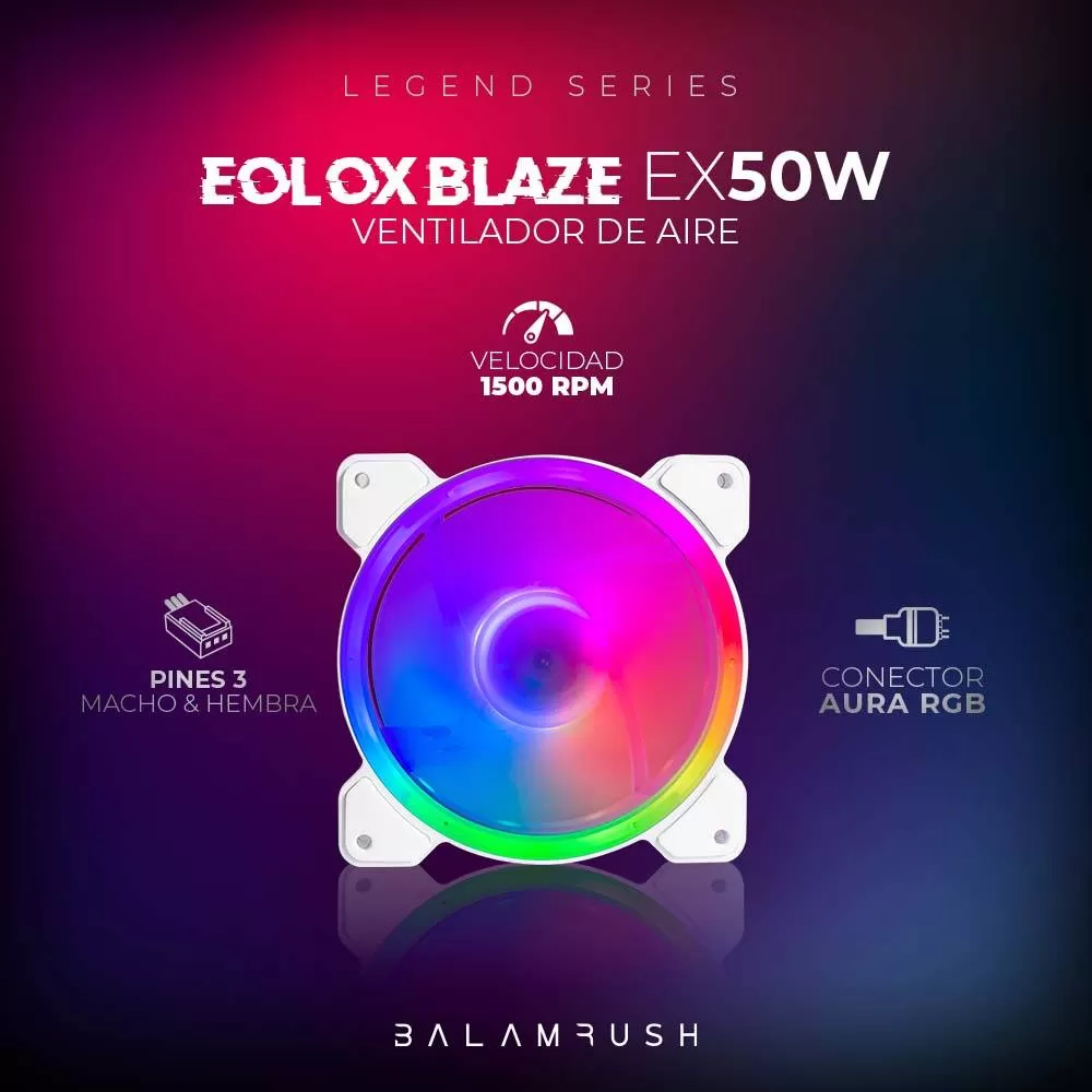 Ventilador de 120mm ARGB Balam Rush Eolox Blaze EX50W Velocidad: 1500 Rpm Flujo de aire: 28.76 CFM