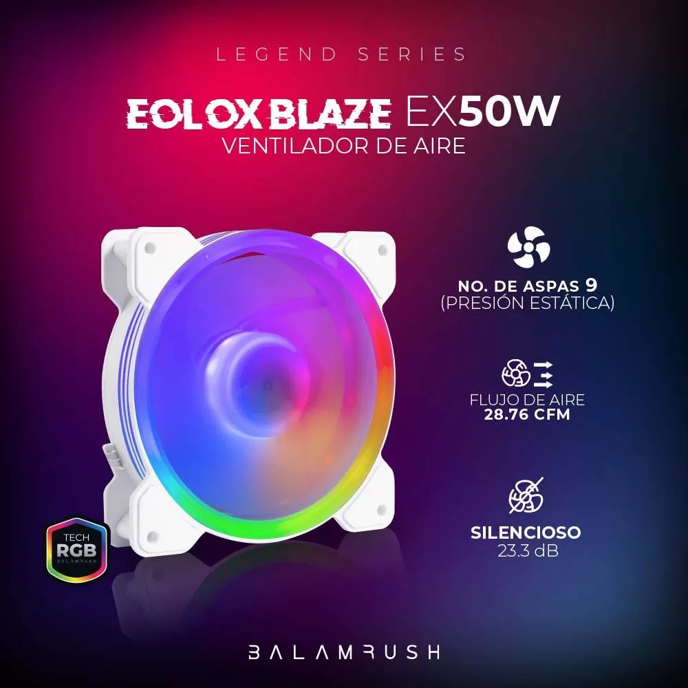 Ventilador de 120mm Balam Rush Eolox Blaze EX30W: Velocidad: 1200 Rpm Flujo de aire: 31.3 CFM